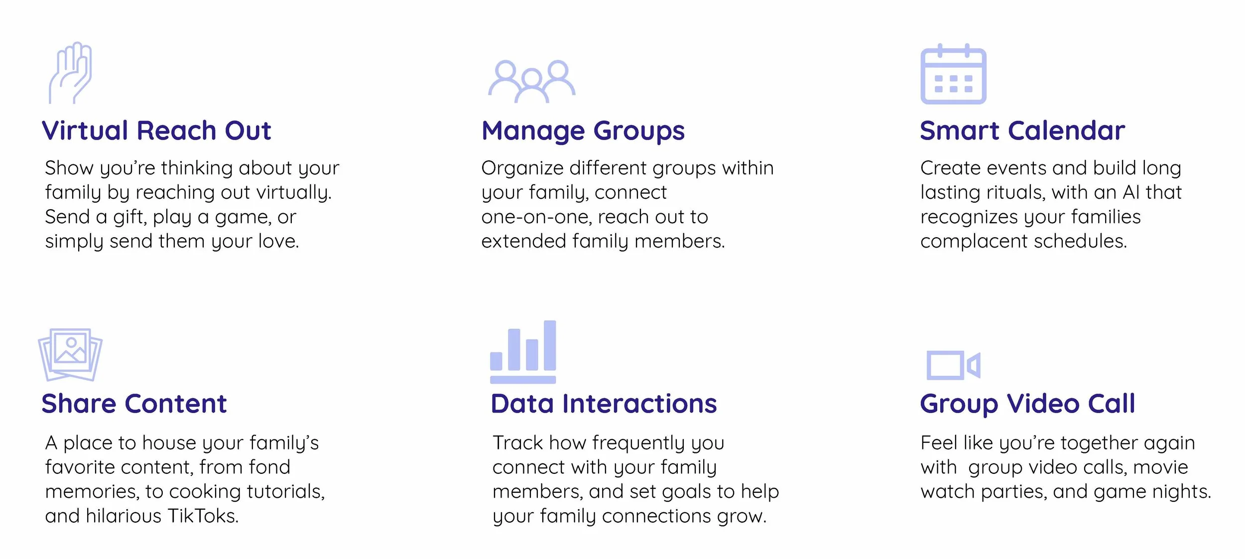We set out to design a platform that will strengthen the bond between family members by creating purposeful communication, encouraging sentimental memories, and emulating physical closeness.