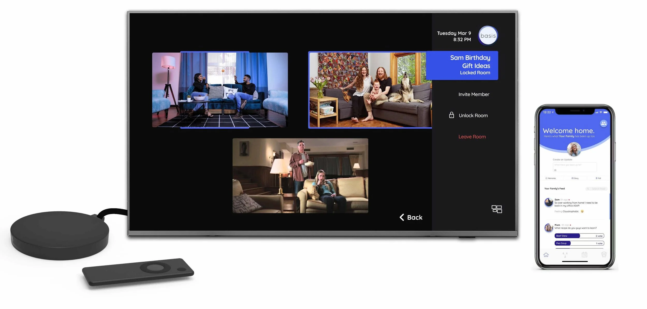 Basis is a three-part ecosystem that includes a mobile application, a TV application, and a gesture tracking camera. Our mobile app focuses on communication on the go. With features such as creating events, playing games, and sharing content with your family.